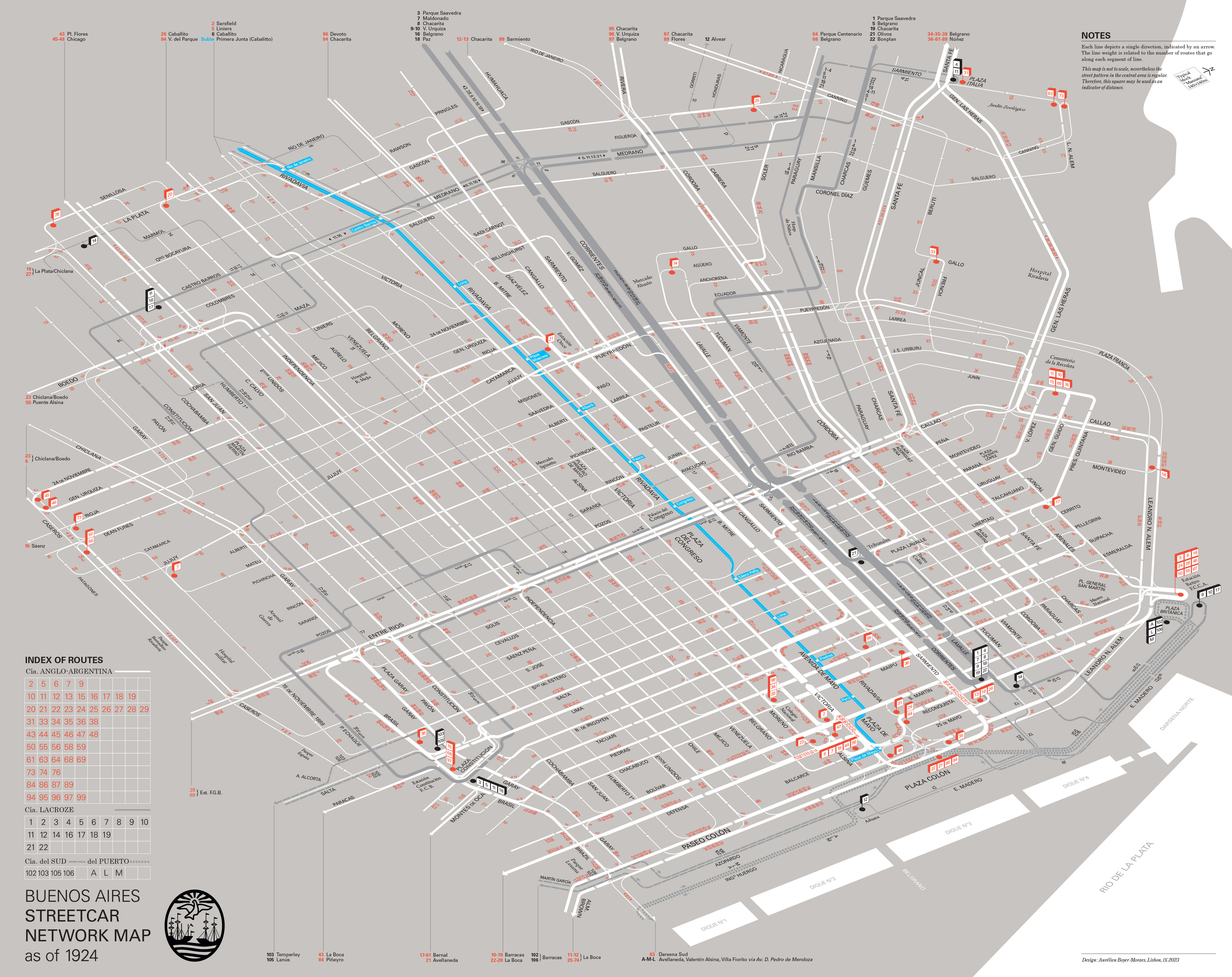 Buenos Aires Streetcar Map: a revisitation of my first interpretation of the Di Paolo-Pares small map of the central area (March 2021). Something that was brewing in the back of my mind for some time. Here it goes.