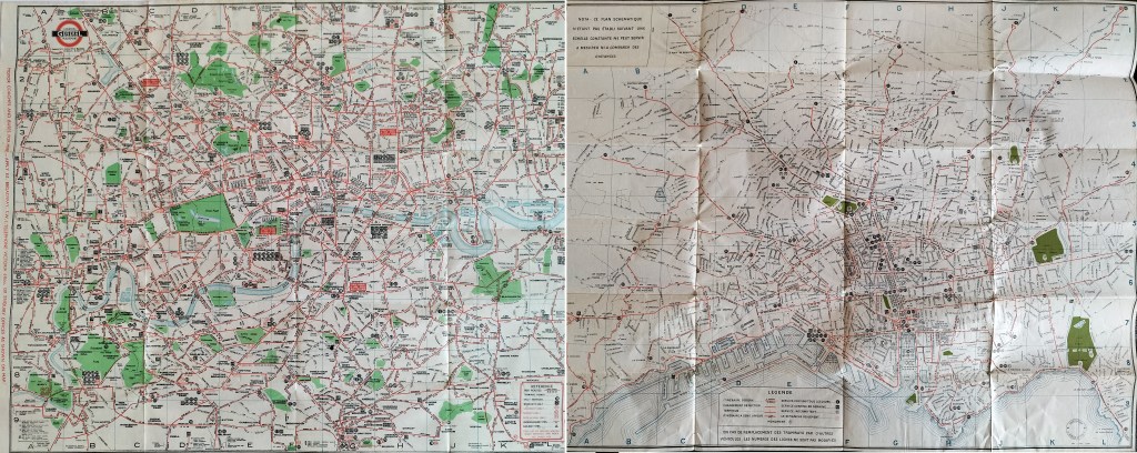 Le ou les auteurs de ce plan ont choisi comme référence ce qui se faisait à Londres plutôt qu’à Paris, les plans du réseau de surface contemporains de la STCRP étant très différents, c’est aussi une dimension importante à noter. À Marseille, comme à Londres, le traitement laisse une plus grande place à la communication de l’offre, des types de services, la représentation de la ville est très simplifiée, une hiérarchisation est clairement opérée. Mis à part les différences inhérentes aux deux villes (difficilement comparables par ailleurs), reste un langage visuel identique, — semblable, tout en étant distinct.